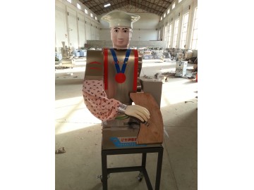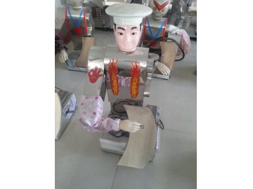 1)将刀削面机器人安置稳固后,插上220V电源,(电源不稳定地区建议使用稳压器连接,确保地线连接正常),待眼睛指示灯闪亮数秒,无任何异常,即可进行下一步操作。